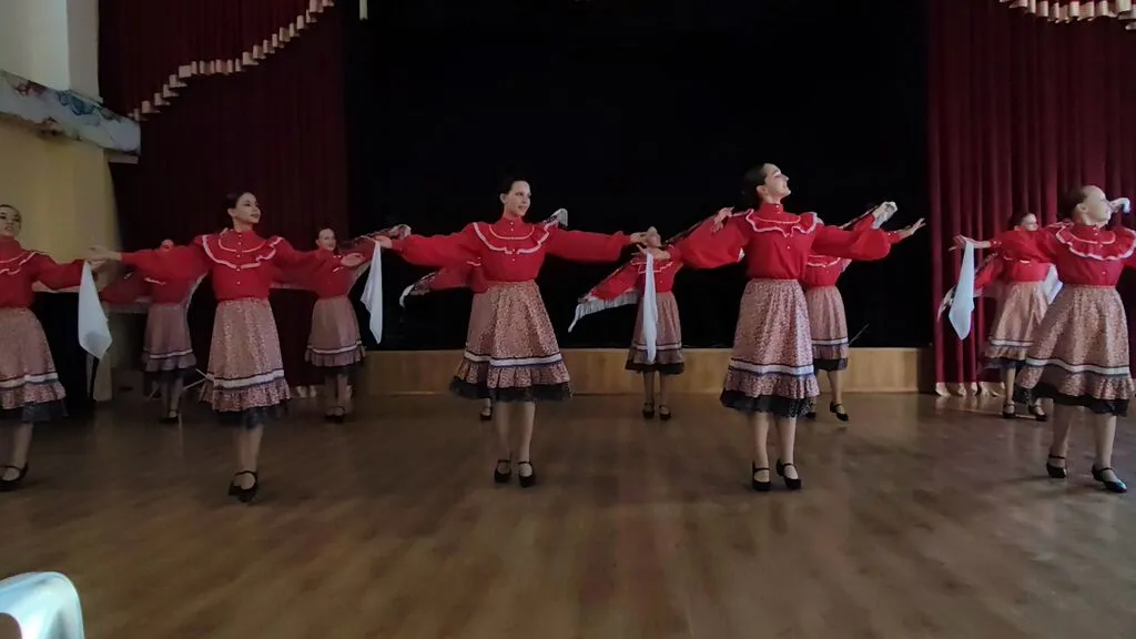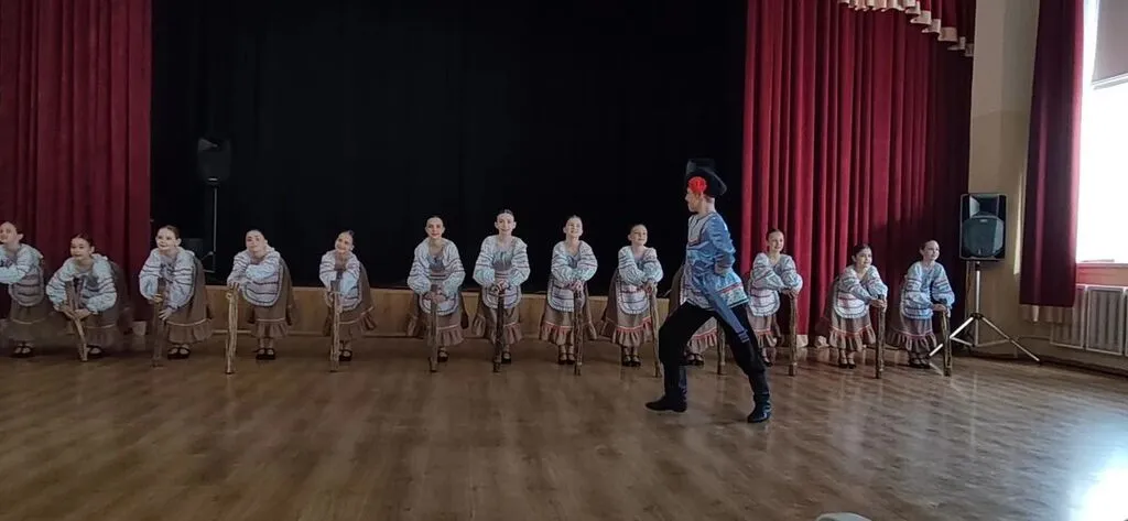 Ритм подхватили юные артисты, учащиеся методического объединения «Хореографическое искусство», участники образцового художественного хореографического ансамбля «НикА» (руководитель и преподаватель Никитина Анна Динаровна, преподаватель Гурашкина Ангелина Константиновна, концертмейстер Федоровна Елизавета Геннадьевна). На сцене царила настоящая казачья удаль в девичьем исполнении: плавные хороводы сменялись задорными дробными выходами, лёгкий шаг – звонкой присядкой. Каждое движение девушек рассказывало о характере казачки – гордой, весёлой и трудолюбивой. Зрители не скрывали улыбок и сами прихлопывали в такт.